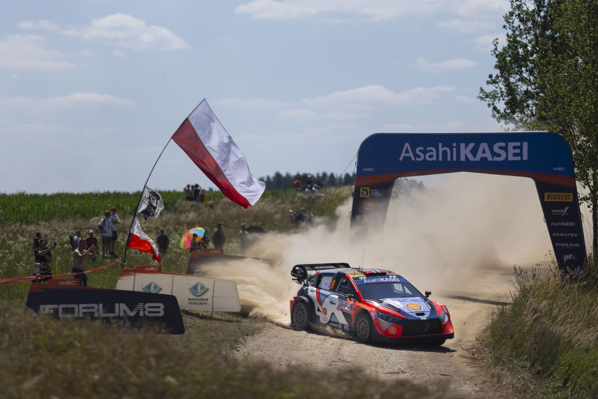 2017年以来、7年ぶりにWRCのカレンダーに復帰したラリー・ポーランドが開幕、ポーランド北東部「ミコワイキ」のサービスパークのすぐ近くで行なわれたスーパーSSで戦いの火蓋が切って落とされたラリー・ポーランドは、金曜日から一日を通しての戦いがスタート。サービスパークの北側から東側にかけての広いエリアで、3本のステージを日中の「タイヤフィッティングゾーン」を挟んで各2回走り、一日の最後にはミコワイキで2回目となるスーパーSSを走行。その合計距離は113.50kmが予定されていました。ところが、そのうち数本のステージについては観客の安全確保に関わる理由により、キャンセルまたは中断されることに。ステージを全開で走行できなかった選手に対しては、ノーショナルタイム(救済のための想定タイム)が与えられました。