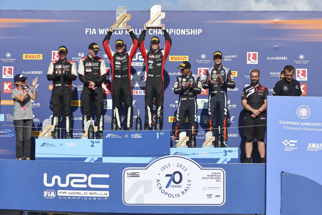 前日のデイ3でトップに立ち、総合2位のダニ・ソルド(ヒョンデ)に2分以上の差を築いたロバンペラは、十分なリードがあることから最初の2本のステージをペースをかなり抑えて走行しました。一方、デイ3総合3位のエバンスは、オープニングのSS13でベストタイムを記録し、2番手タイムのソルドを9秒上回るタイムで総合2位にポジションアップ。続くSS14ではソルドがベストタイムで応戦し、エバンスとの差は2.7秒に縮まるも順位は変わりませんでした。そして迎えた最終のSS15は、ボーナスの選手権ポイントがかかるパワーステージ。抑えた走りを続け力を蓄えていたロバンペラは、ここで一気に猛プッシュ。今大会8本目となるベストタイムを記録し、ボーナスの5ポイントも獲得する完全勝利で今シーズン3勝目を獲得しました。エバンスもまた、パワーステージで速さを発揮し、ロバンペラに次ぐ2番手タイムで総合2位を獲得。ボーナスの4ポイントも手にしました。TGR-WRTはこれまで苦手としてきたギリシャで最良の結果を残し、ふたりのドライバーがマキシマムポイントを獲得したことにより、マニュファクチャラー選手権におけるリードを91ポイントに拡大しました。また、前戦ラリー・フィンランドでリタイアを喫しノーポイントに終わったロバンペラは、ドライバー選手権での2位エバンスに対するリードが25ポイントに縮まりましたが、今回の完全勝利により差を33ポイントに拡大。一方、エバンスはドライバー選手権2位の座を守り、3位のティエリー・ヌービル(ヒョンデ)に対するリードを33ポイントに拡げました。