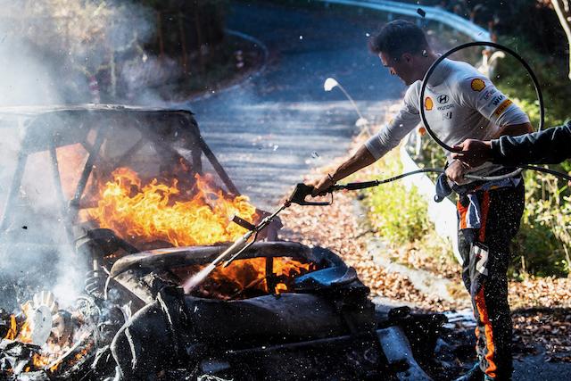 4度目の表彰台を目指したダニ・ソルドは、SS2でヒュンダイi20 N Rally1が出火し、劇的な幕切れとなった。ソルドとコドライバーのカーンディド・カレラは燃え盛るマシンを退去させることができたが、火災の深刻さにより救護は不可能となった。このため、その後の稲生ダムステージはキャンセルされました。ソルドは、「ステージが始まってから、どんどん燃えてきたんだ。数分後、燃え始めた。リアから燃えてきて、何とか消そうとしたが、まったく無理だった。チームには申し訳ないことをした。こんな風にマシンを失うなんて、最悪の日だ」